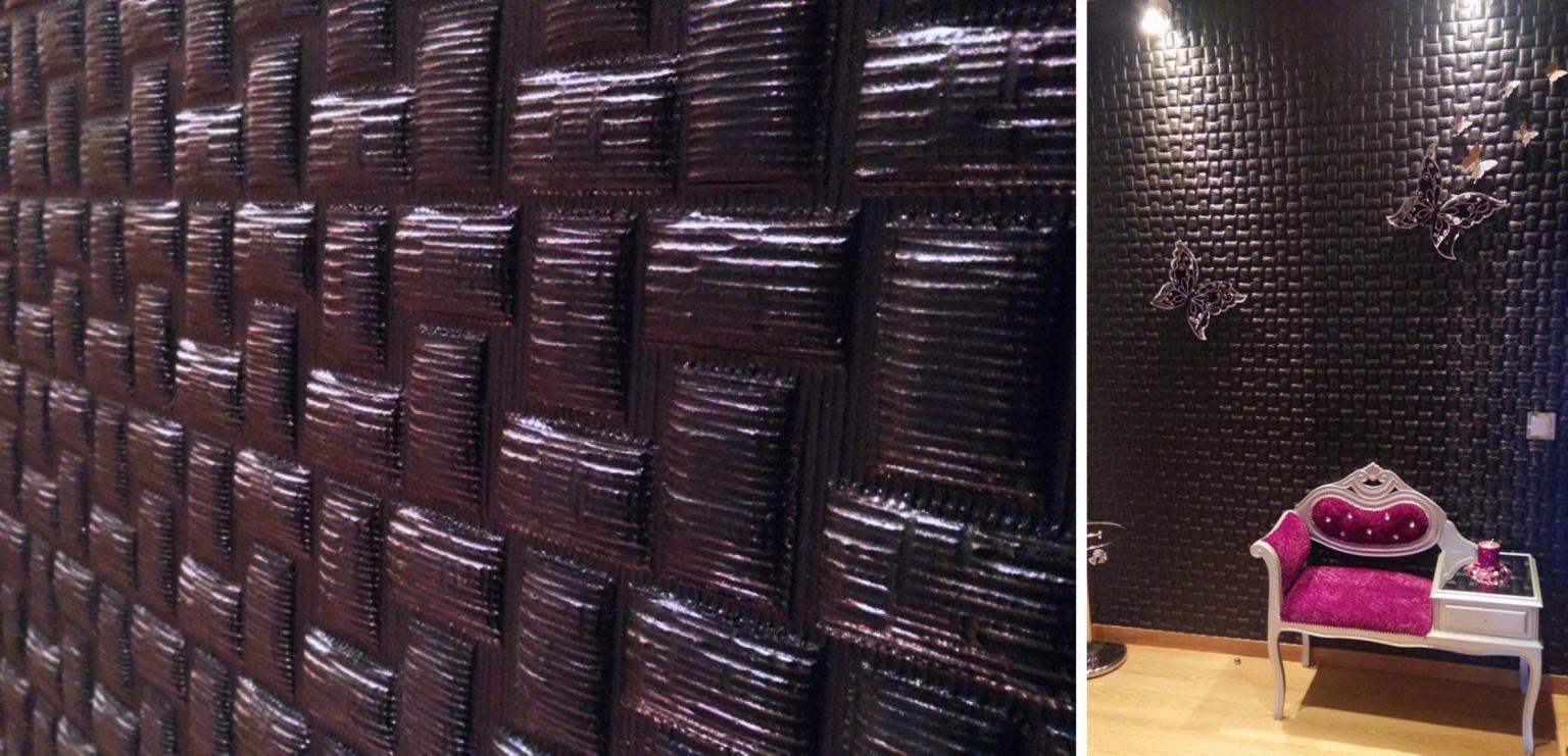 Texturização/desbaste em pvc preto de 5mm para decoração de parede