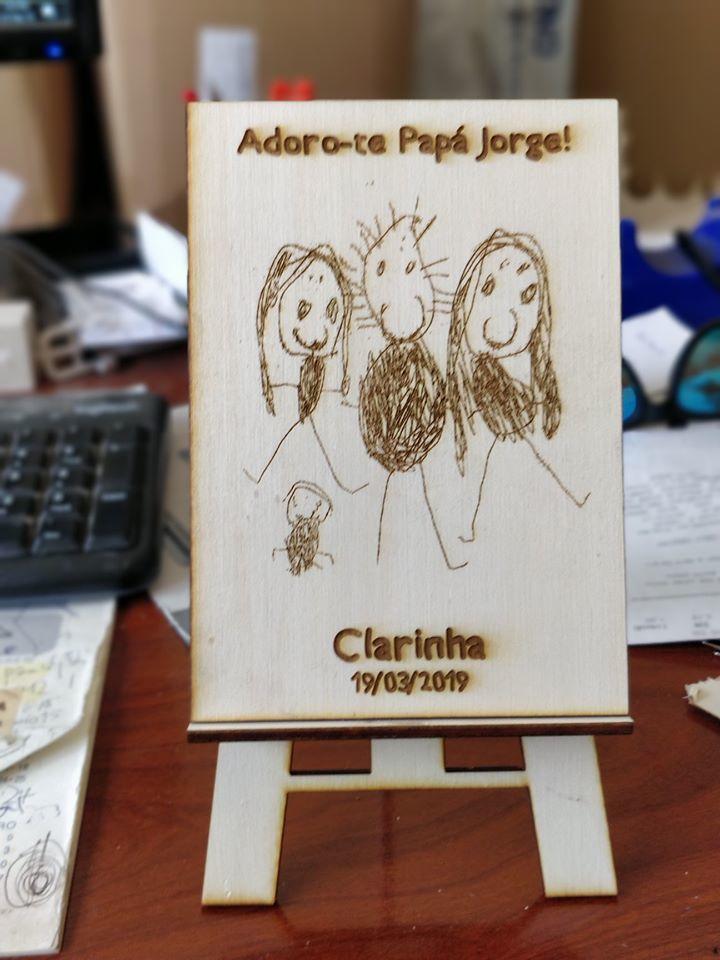 A solução apresentada inclui gravação a laser em contraplacado para logos, texto ou decoração em madeira. Em cada projeto ajustamos material, espessura e processo ao resultado pretendido e ao contexto real de utilização da peça.