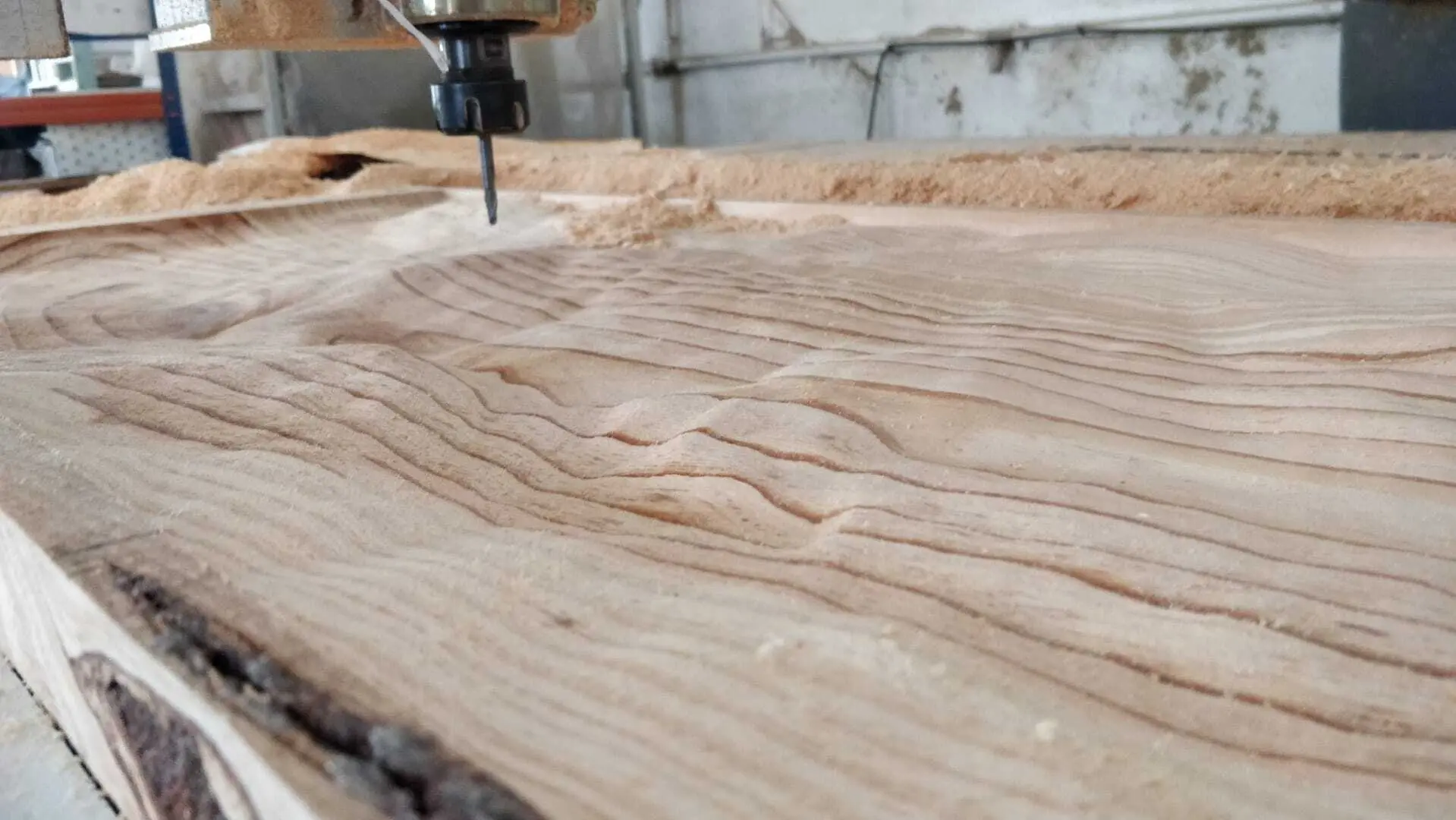 ← corte-cnc · Portfólio Desbaste/texturização de pinho maciço de 50mm para servir de molde para blocos de cimento
